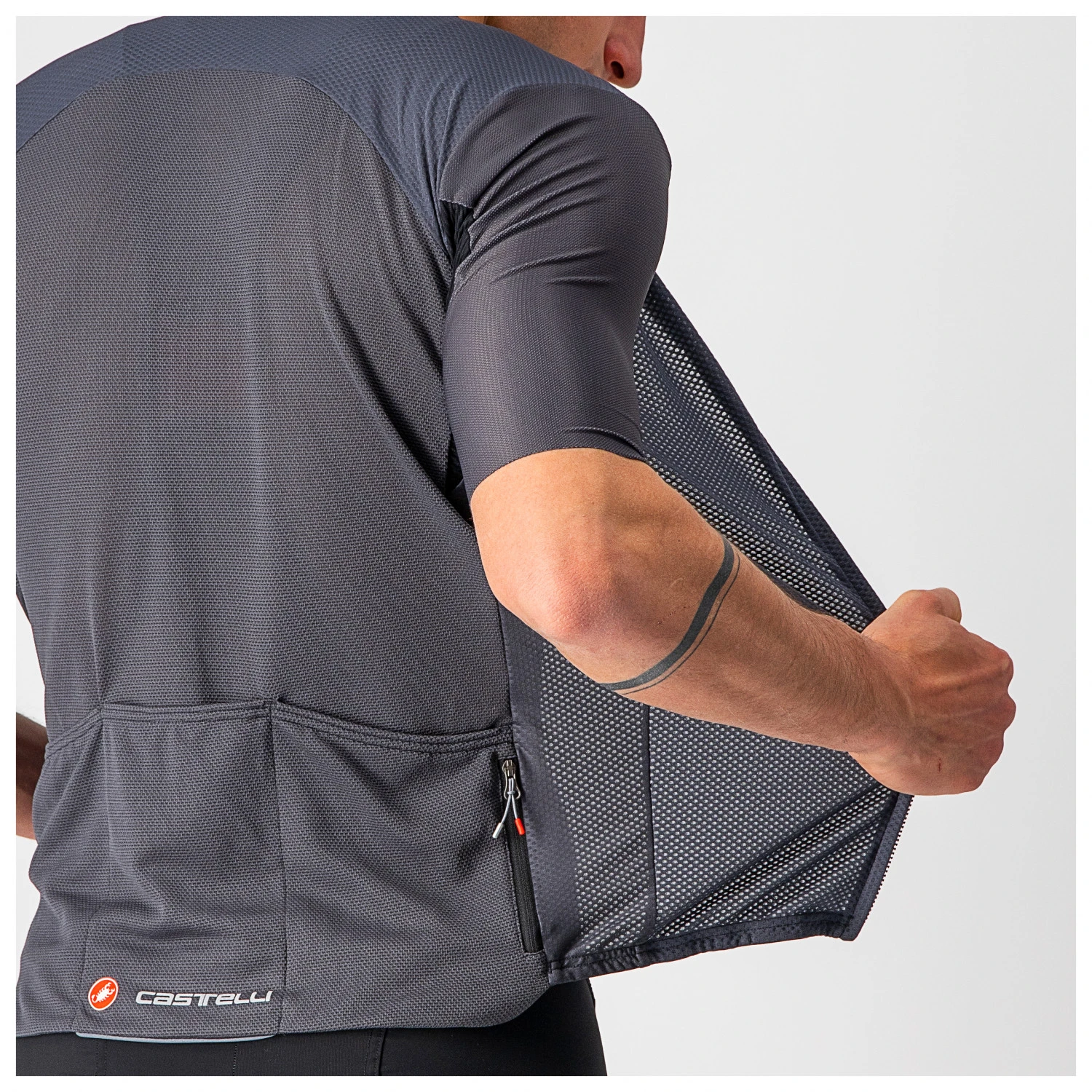 Das Endurance Elite ist eigenen Angaben zufolge Castellis Eines für Alles. Denn -der Name sagt es- für lange Ausfahrten muss die Bekleidung komfortabel sein, es müssen die wichtigsten Mitnehmsel verstaut werden können, und es sollte ein möglichst großer Temperaturbereich abgedeckt werden. Das Gewebe sorgt dafür, dass Du trocken bleibst und so hohen Tragekomfort genießt; das Stretch-Material garantiert, dass das Trikot sehr körpernah sitzt, ohne Dich dabei einzuengen. In einer zusätzlichen vierten, mit einem Reißverschluss gesicherten Rückentasche kannst Du auch Wertgegenstände transportieren. Und ein Silikongripper im Hüftbund sorgt dafür, dass das Shirt rutschfrei sitzt.