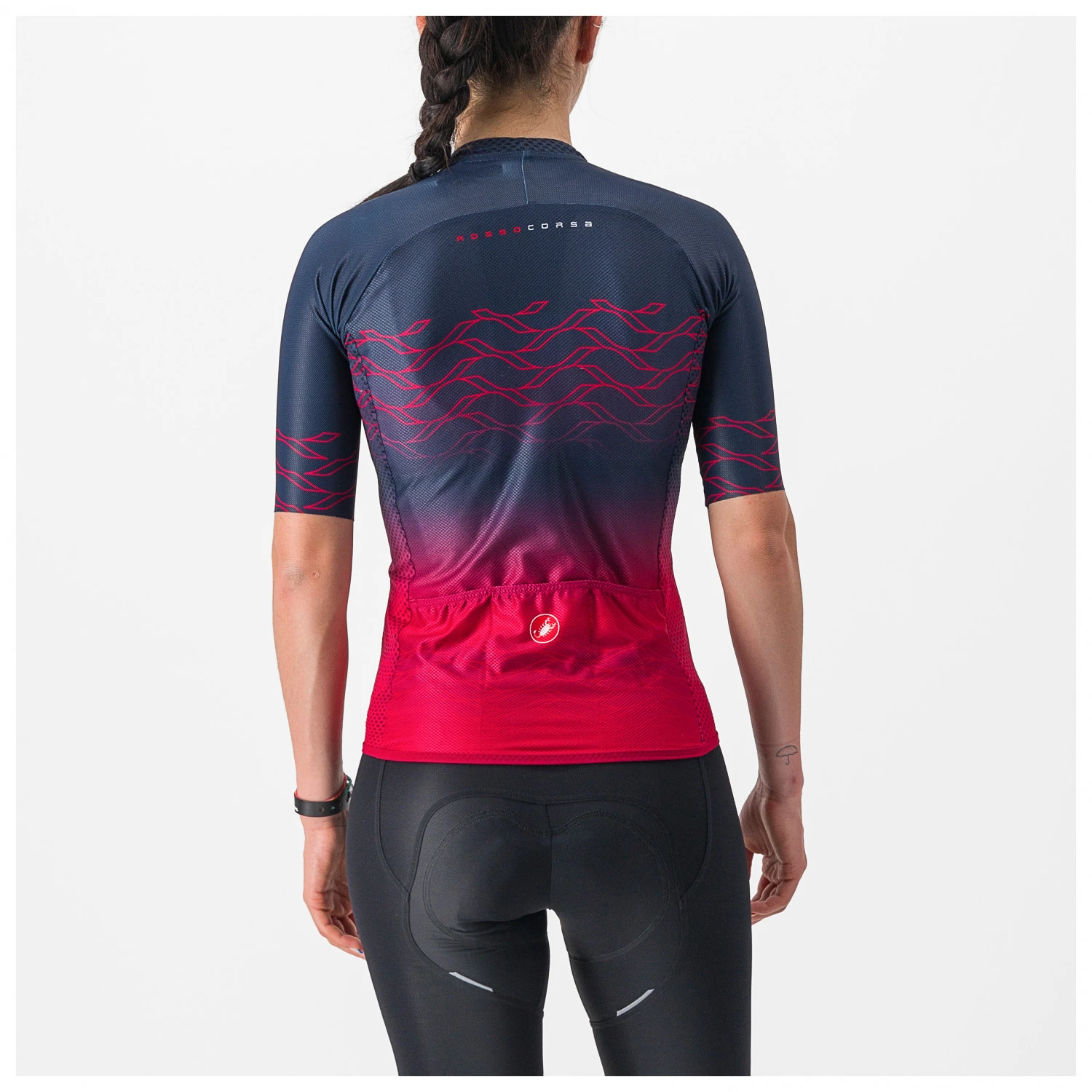 Das Women’s Climber’s 2.0 von Castelli ist ein gründlich auf heiße Temperaturen und hohe Intensität und Anstrengung ausgelegtes Rennradtrikot! Das Flusso 3D-Gewebe der Vorderseite und Ärmel ist mit Mesh durchsetzt, um eine ausreichende Belüftung zu gewährleisten. Beim StradaPro 3D-Material der Rückseite hingegen liegt der Fokus auf Atmungsaktivität und Feuchtigkeitsmanagement, und es trocknet sehr schnell. Außerdem soll das Rückenmaterial schädliche UV-Strahlung blockieren.