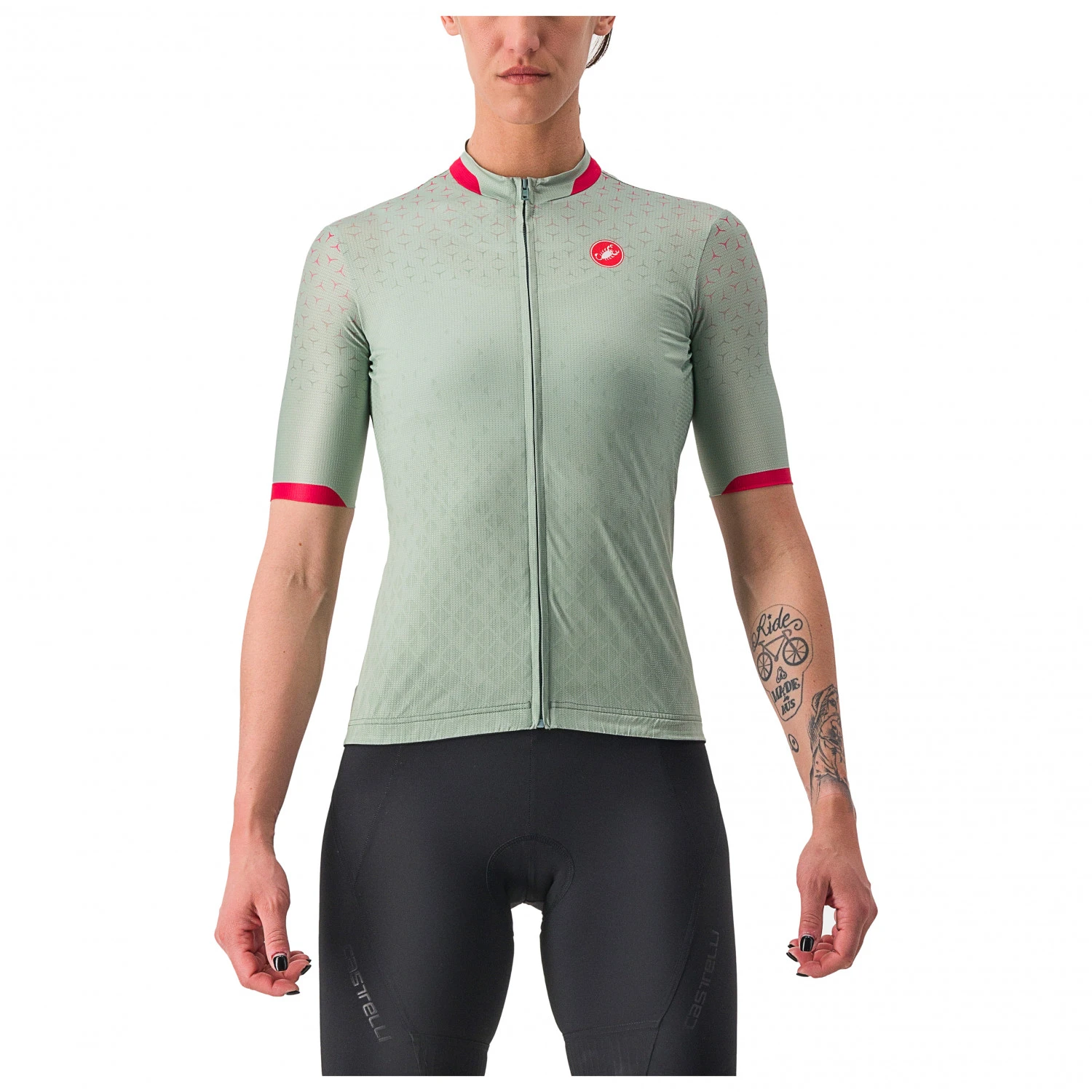 Beim Women’s Pezzi Jersey von Castelli fügen sich alle Stückchen (Pezzi!) zusammen! Es ist ein ideales Allround-Trikot für jede Deiner Touren, komfortabel beim Training, schnell bei rasanten Gruppenausfahrten. Das Strada Micromesh-Stretch– Material sorgt für beste Belüftung und ein erstklassiges Feuchtigkeitsmanagement, und gleichzeitig für einen idealen Sitz des Jerseys. Anatomisch geformte Seiteneinsätze machen den Übergang zum Rückenbereich so geschmeidig wie möglich und verbessern die Passform so nochmals. Der durchgehende Front-Reißverschluss ist ein YKK Vislon, der leichtgängigste Reißverschluss auf dem Markt. Damit das Trikot nicht hochrutschen kann, ist der Hüftbund innen mit einem Silikongripper versehen.