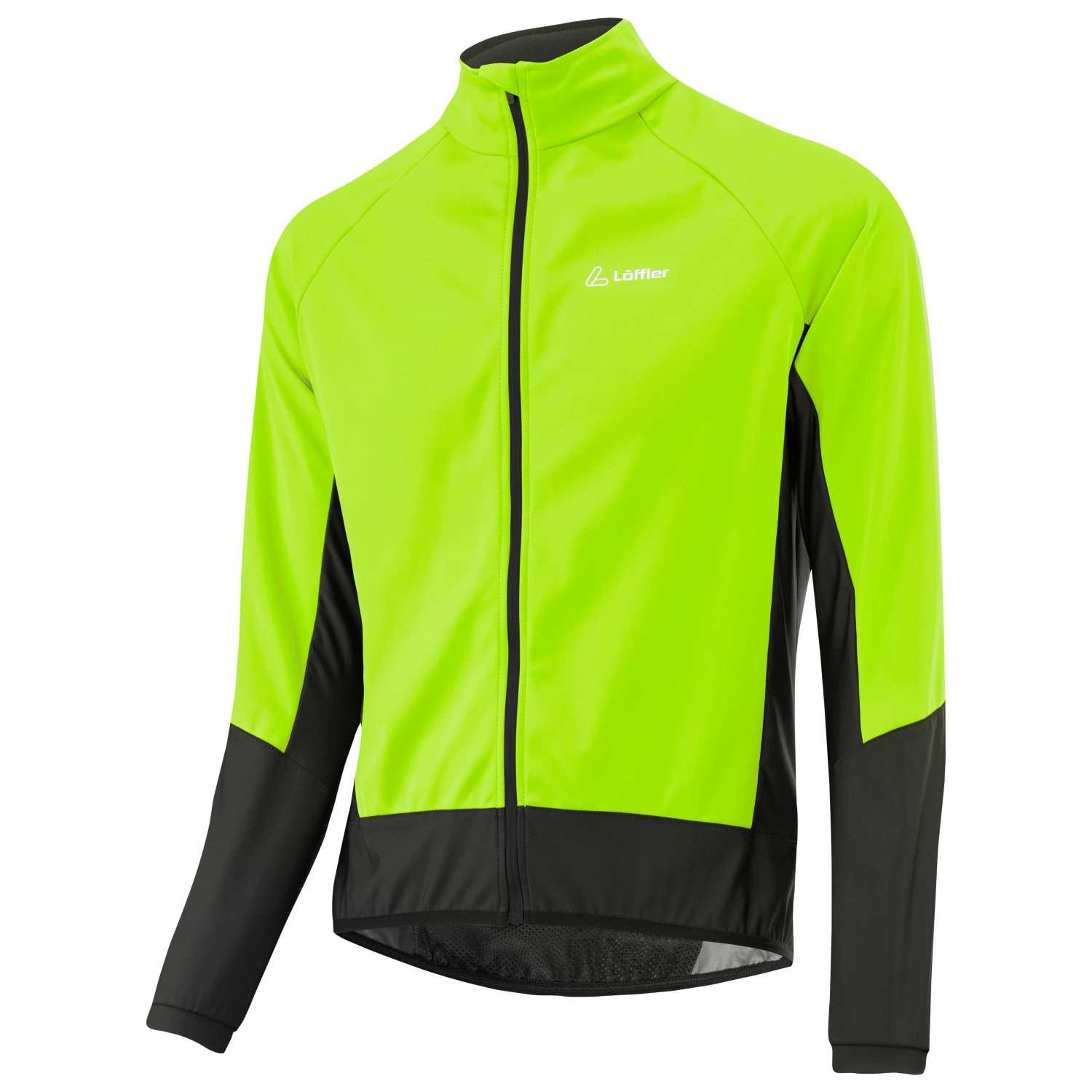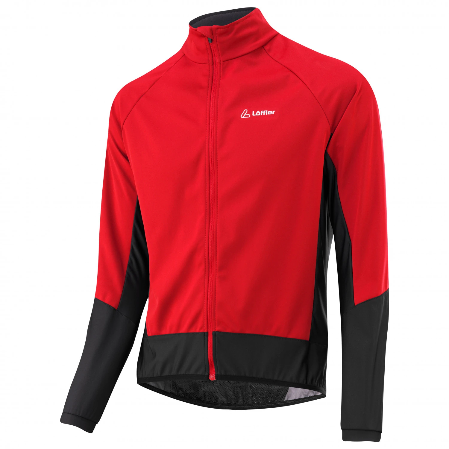 Löffler stattet die wasserabweisende und windundurchlässige Bike Jacket Alpha II Windstopper Light Jacke mit hohem Stehkragen und durchgehendem Frontreißverschluss aus. So lässt sich auch der Halsbereich effektiv vor Wind und Fahrtwind schützen.