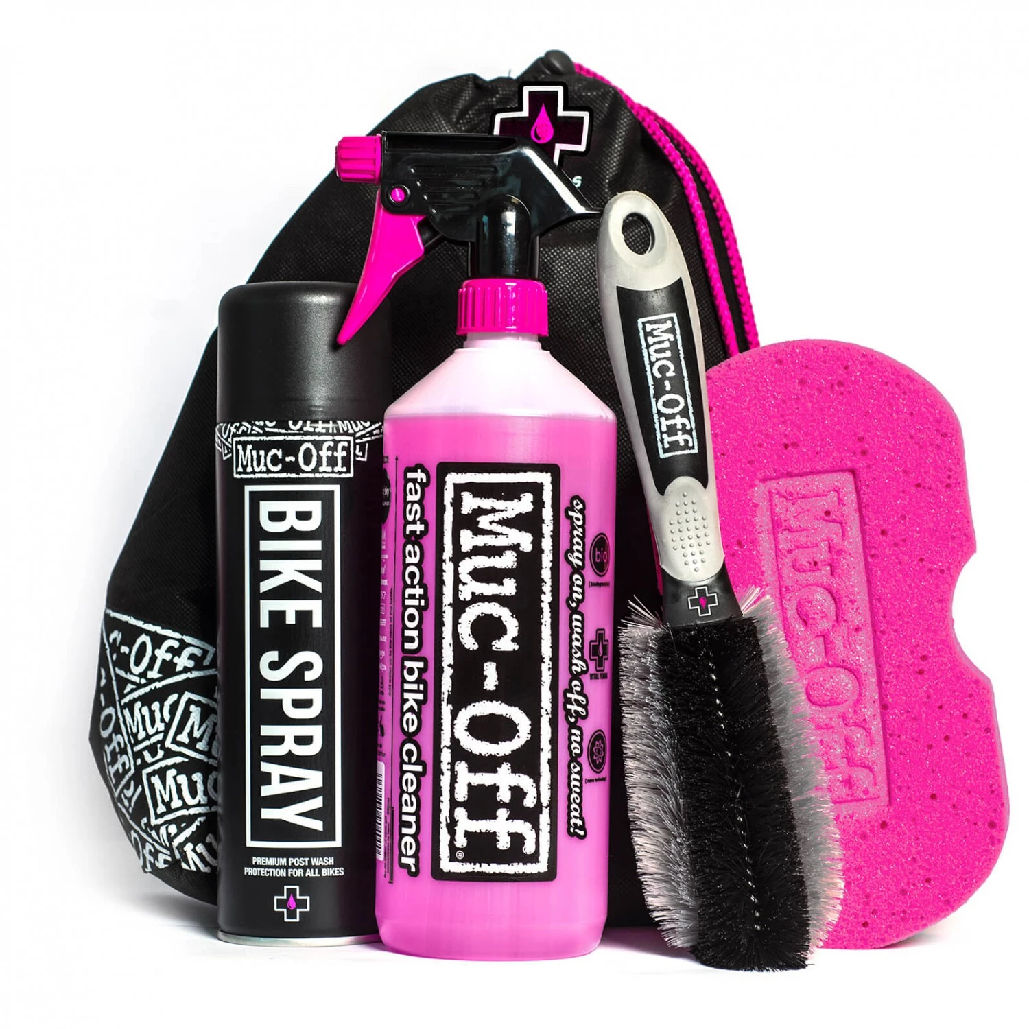 Beim Essential Kit Reinigungsset von Muc Off ist alles dabei, was man zur Grundreinigung des Bikes braucht: