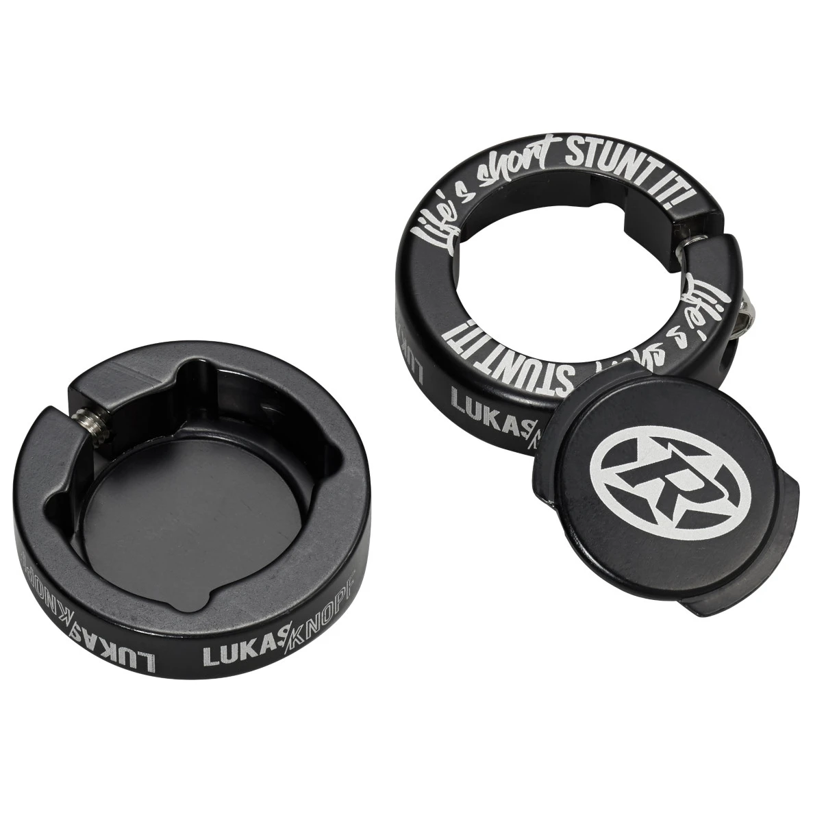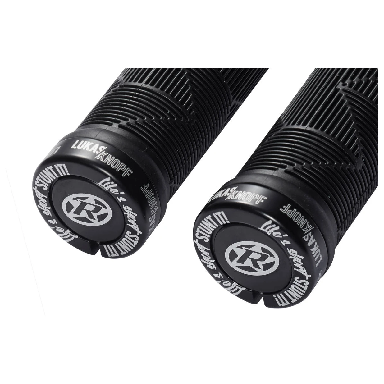Die Lukas Knopf Signature Griffe von Reverse bieten einen optimalen Kompromiss aus Komfort und Kontrolle. Die Lamellenstruktur sorgt in alle Richtungen für einen festen Halt, ohne zu dick aufzutragen. An den äußeren Aluminium-Clamps ist das Motto von Lukas Knopf zu finden – „Life is short – stunt it!“