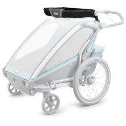 Neben den kleinen Passagieren findet auch das Gepäck seinen Platz. Eine geräumige hintere Gepäcktasche nimmt alles auf, was man unterwegs braucht. Die Tasche kann für mehr Beinfreiheit auch abgenommen und verstaut werden, wenn der Thule Chariot Cross 2 für eine Joggingrunde genutzt wird. Den Wechsel zwischen Radanhänger und Spaziergänger oder Jogger vollzieht man dank des im Lieferumfang enthaltenen Buggy-Sets schnell und einfach. Die beiden Systeme Thule Click n’ Store und Thule VersaWing machen das Ganze zu einer Sache von wenigen Handgriffen. Zudem ist der ergonomische Schiebebügel für den „Buggy Modus“ verstellbar, sodass er sich beim Gehen oder Joggen in optimaler Greifposition befindet.