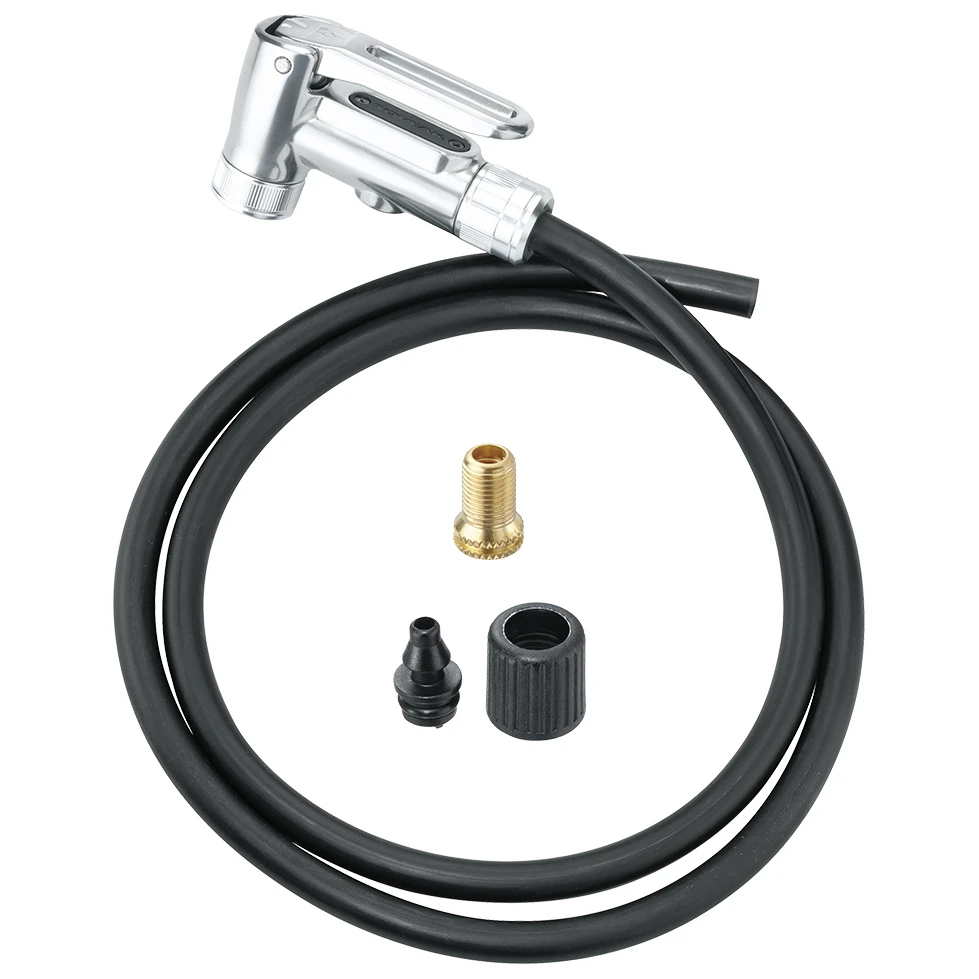 Das Topeak SmartHead DX1 Upgrade Kit verfügt über einen langen Schlauch und eignet sich durch den integrierten SmartHead ideal für Mountainbike- und Rennrad-Reifen. Durch den langen Hebel aus robustem Aluminium und einen Ablassknopf kannst Du den Luftdruck Deiner Reifen jederzeit bequem anpassen.